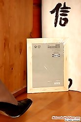 Redhead mature chick seducing her co-worker into outrageous pantyhose sex